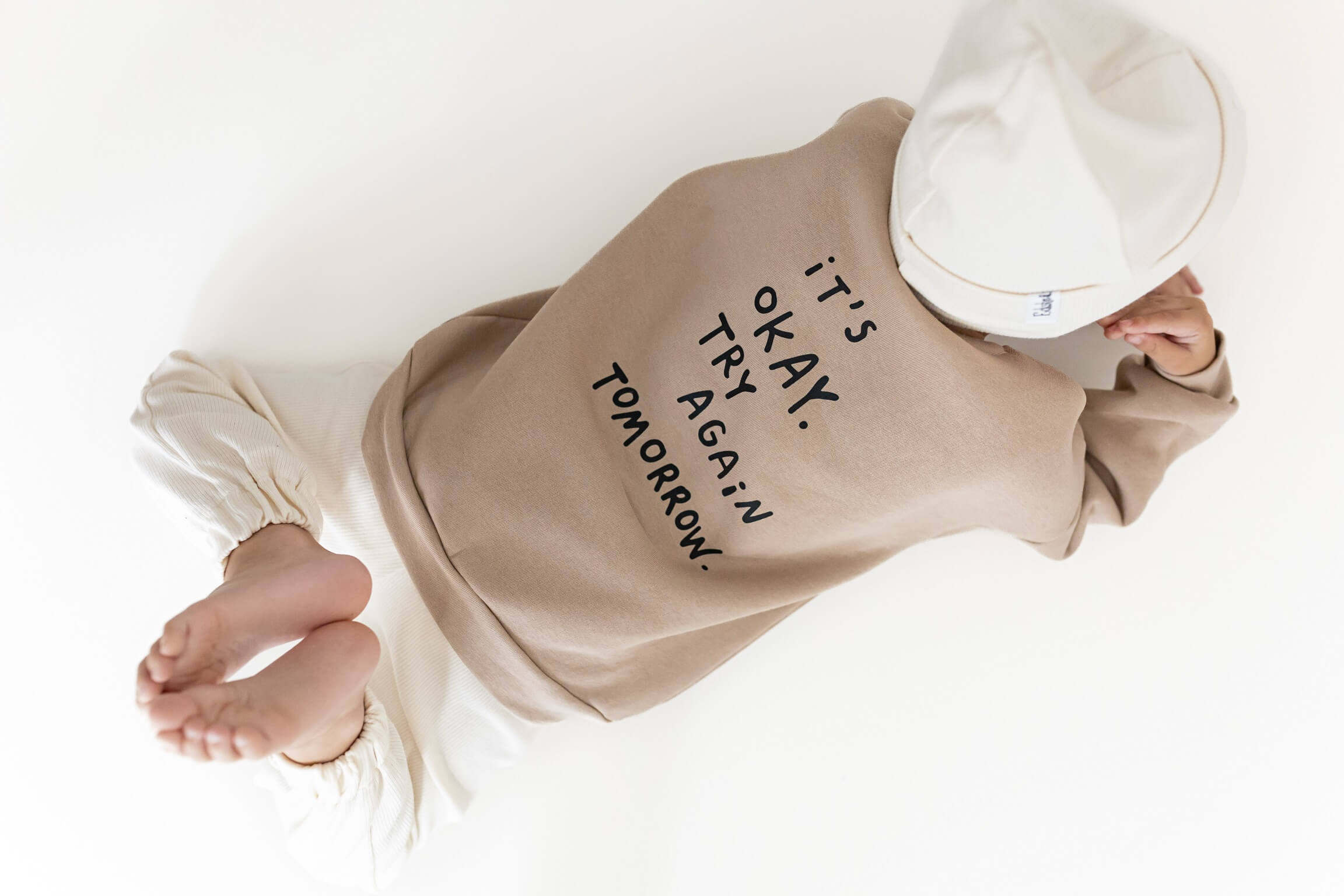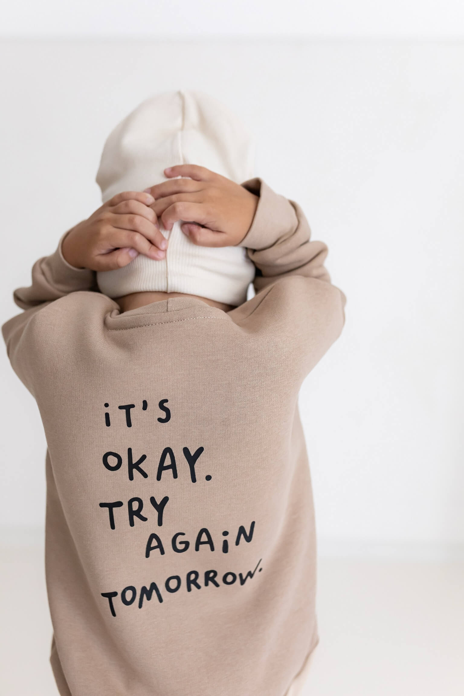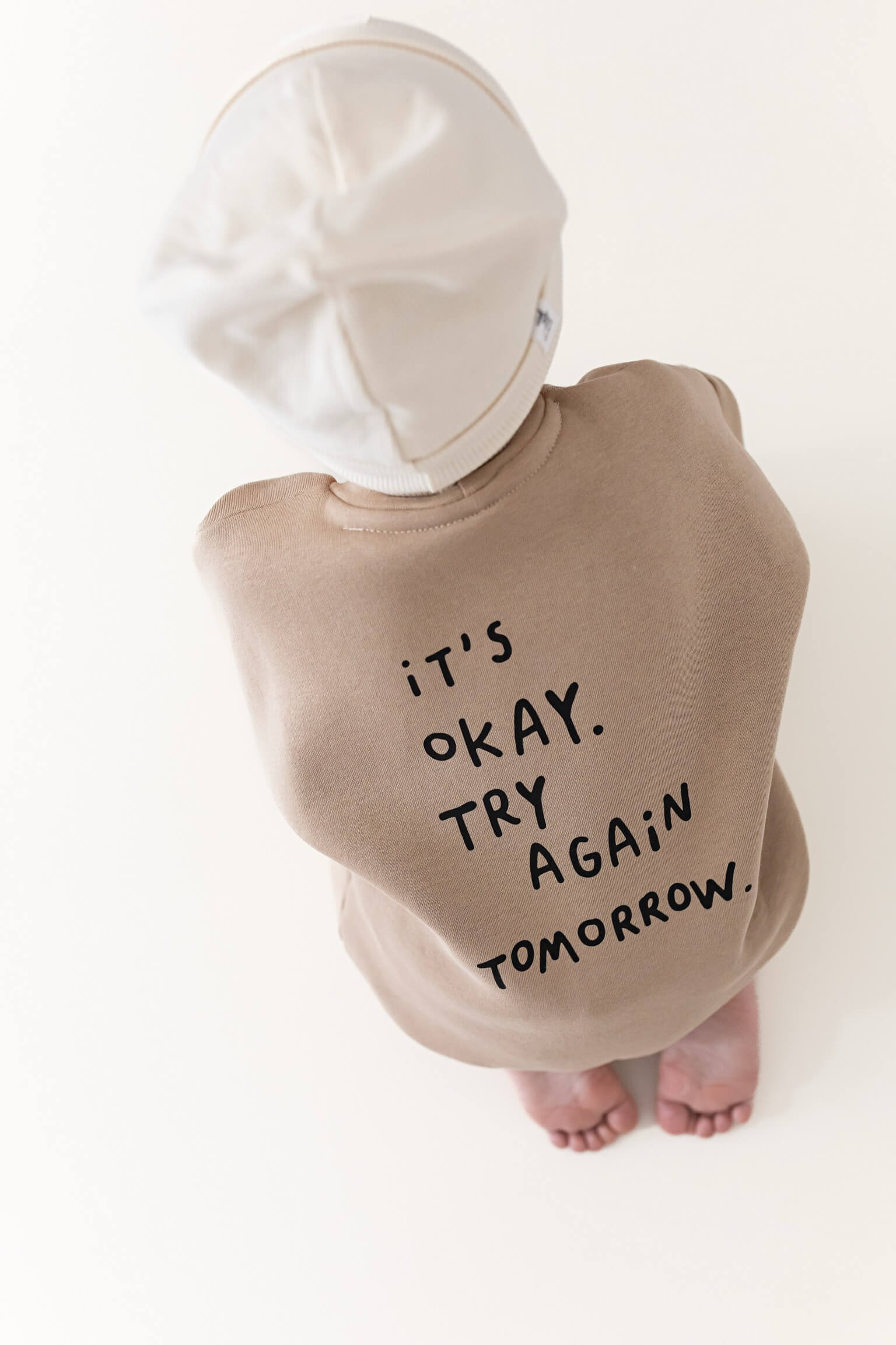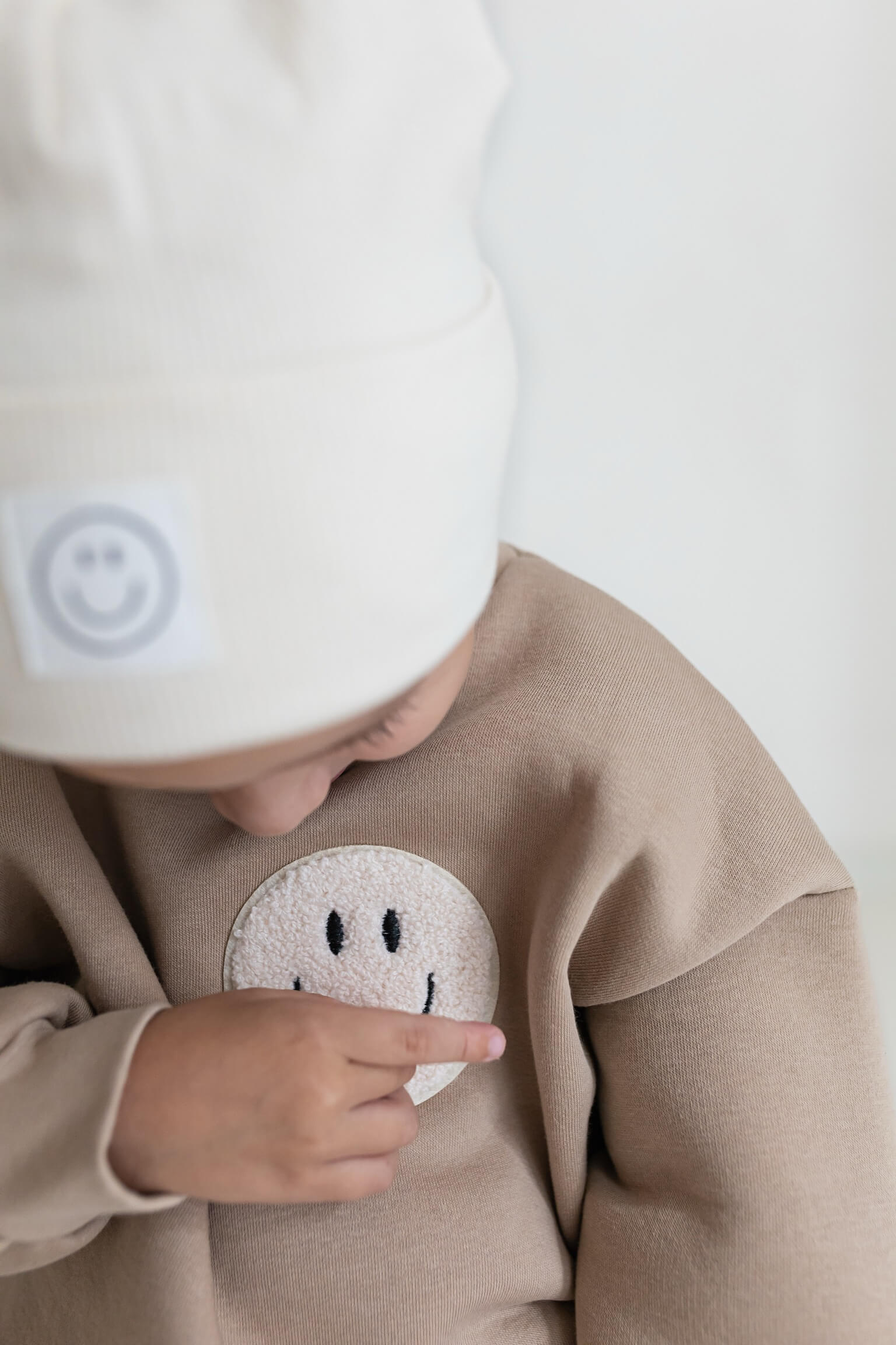 Der oversize Sweater fällt größer aus. Auf den Bildern siehst du die Farbe Latte (Kuschelsweat).