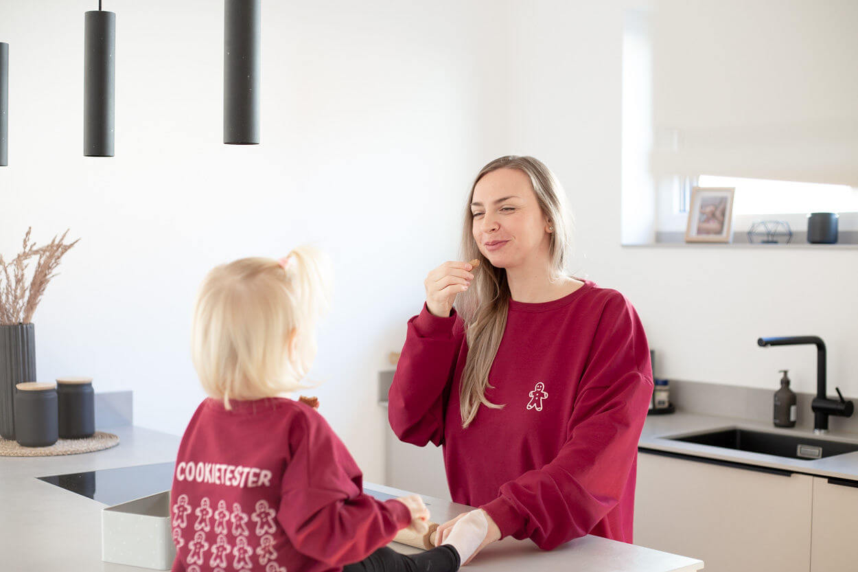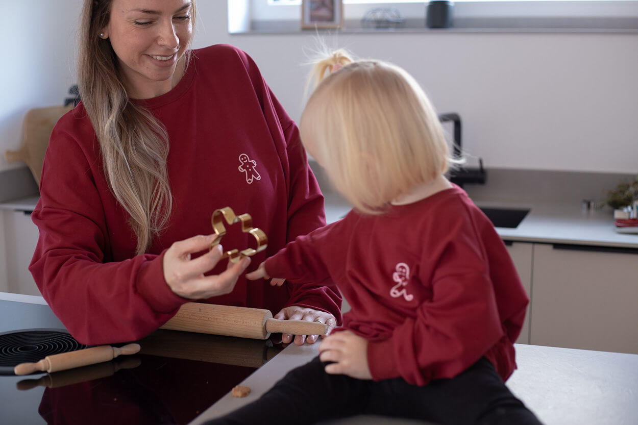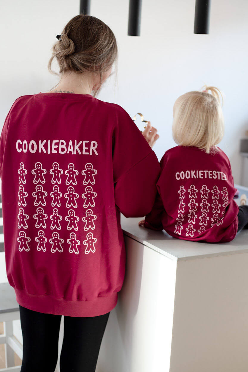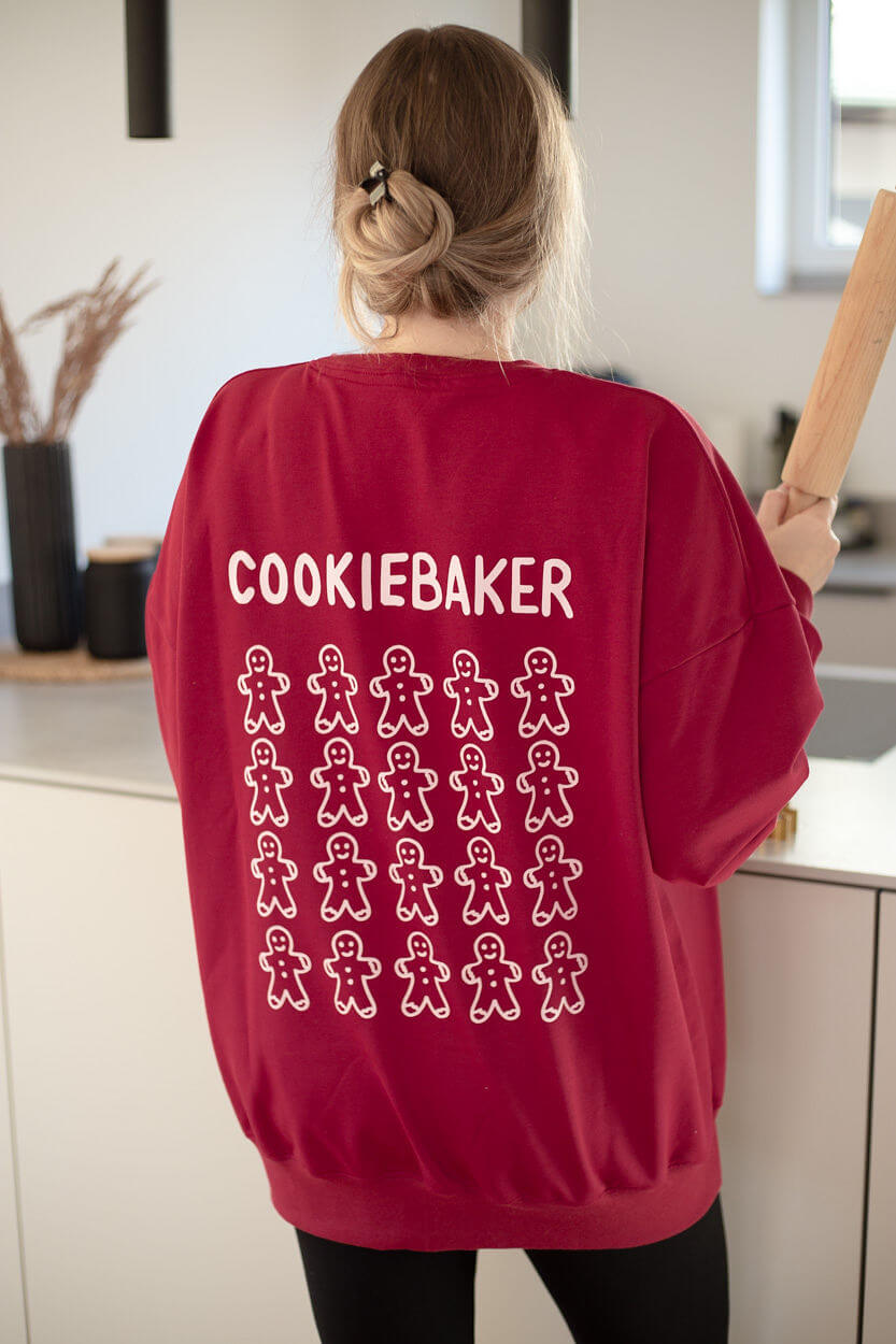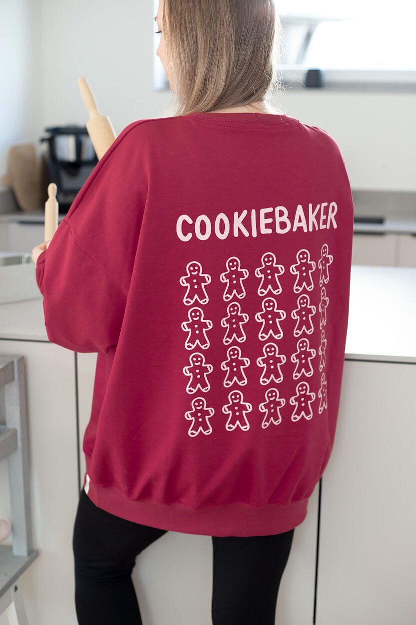 Auf den Bildern siehst du die Farbe burgundy – ein tolles Weinrot. Der Aufdruck hat die Farbe zartes rosa.