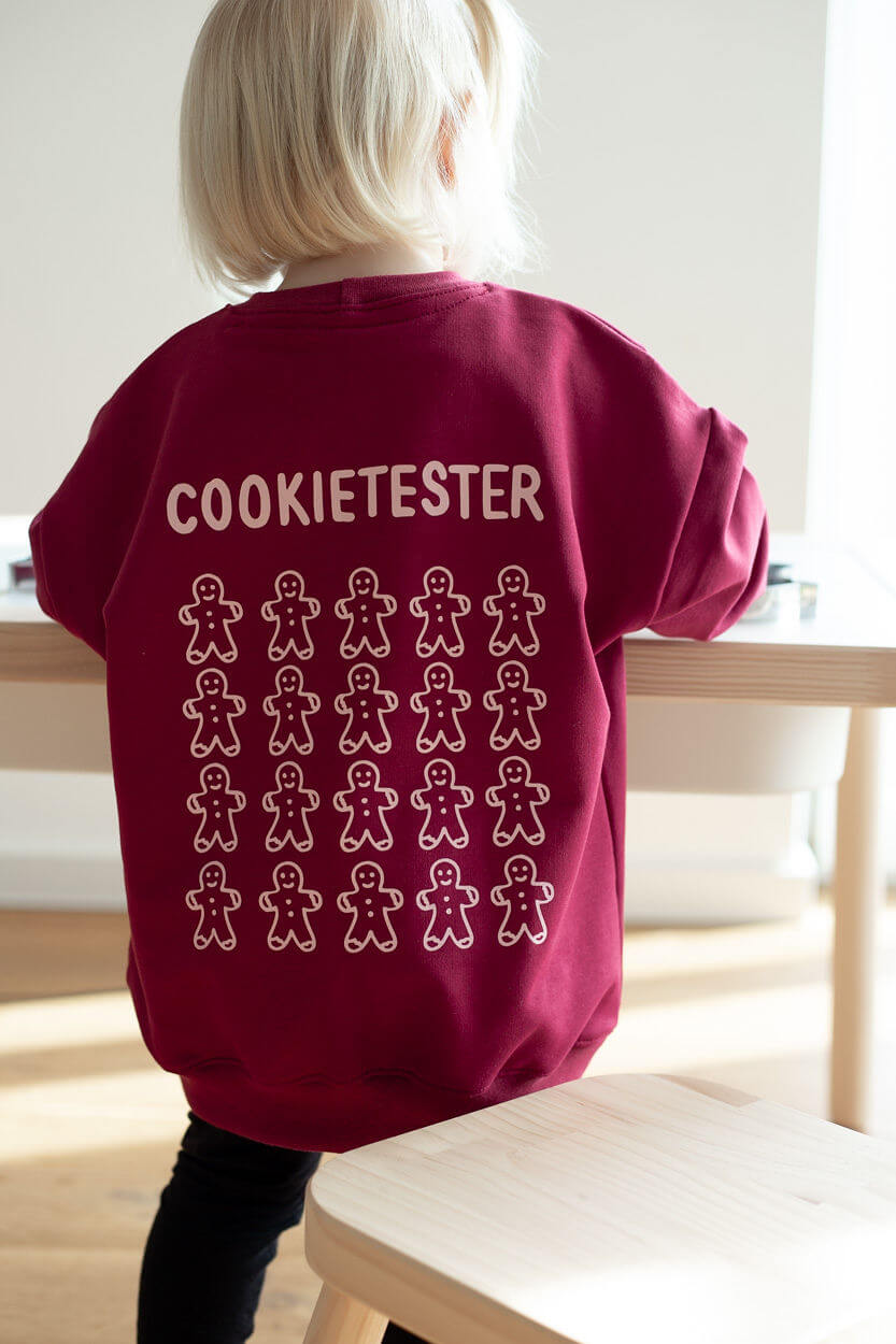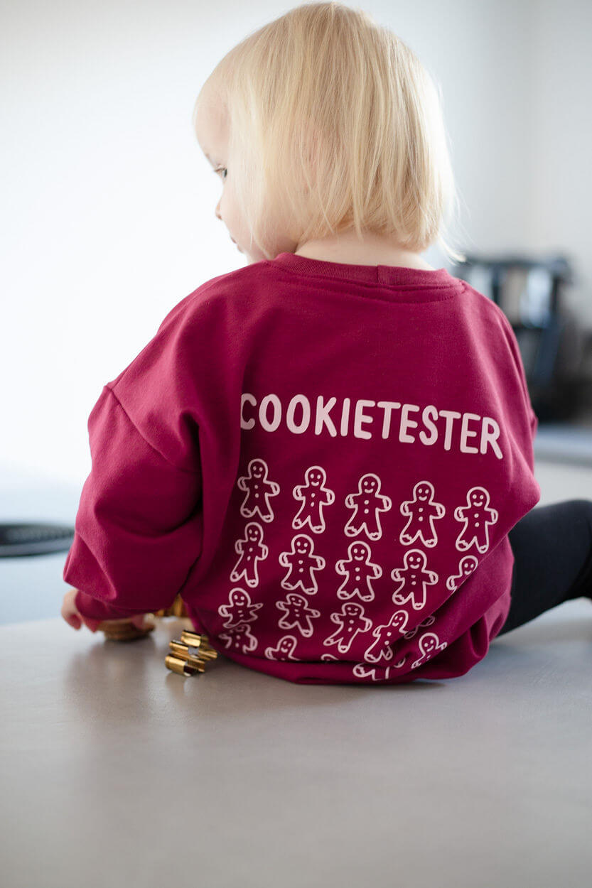 Der Sweater fällt leicht oversize. Auf den Bildern siehst du die Farbe burgundy – ein tolles Weinrot.